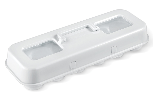 Crafted from durable, food-safe plastic, this cupcake carrier features a unique egg-carton-inspired design and two clear viewing windows, so you can check your cupcakes without opening the lid. The updated design includes small holes at the base of each cup for easy release, so serving is just as smooth as the ride.
